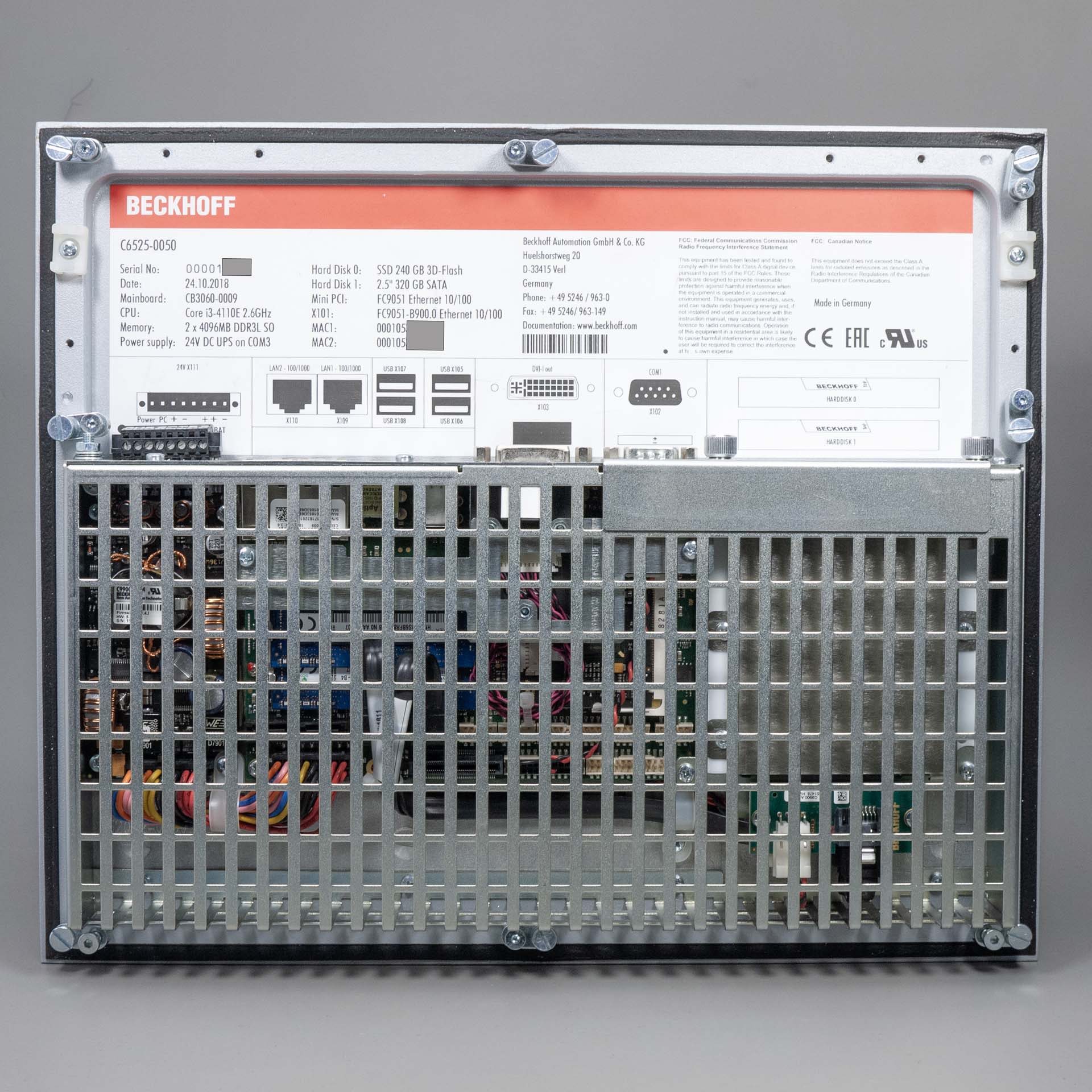 Beckhoff C6525-0050 i3-4110E 2.6Ghz 8GB W10 LTSB 2016 + Win 7 Emb Pro IPC