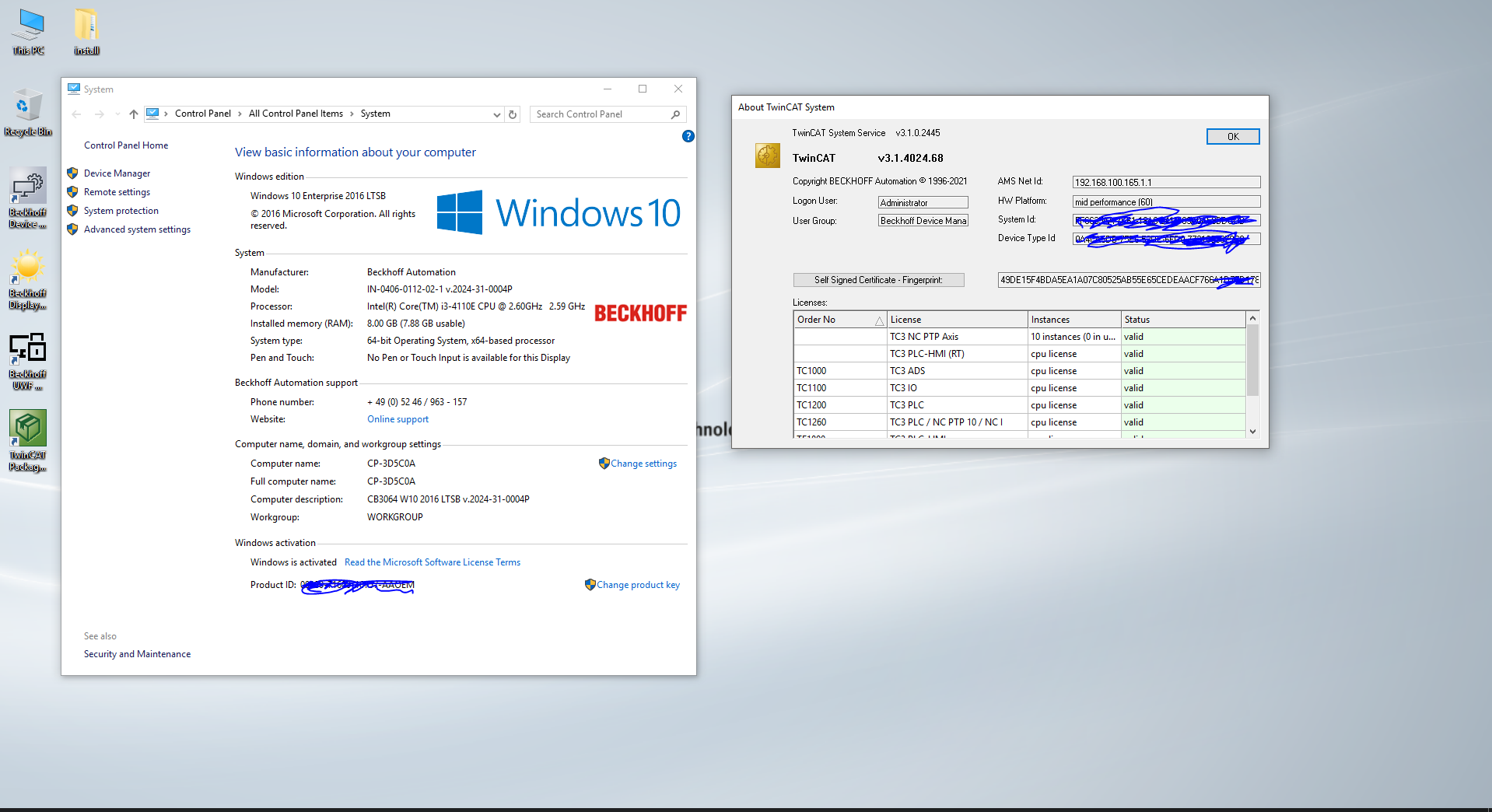 - installed Beckhoff Windows 10 LTSB 2016 and digitally activated online + OS deployment Images included in install folder
