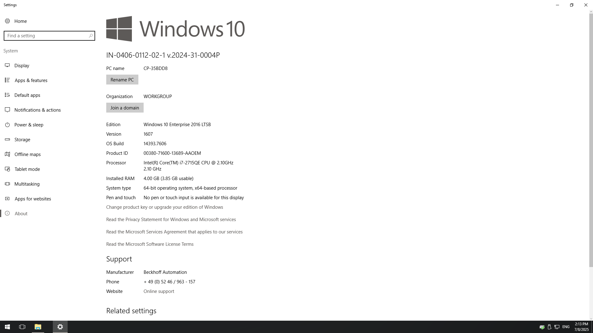 - No Windows 10 LTSB sticker but looks like previous owner purchased license for this IPC