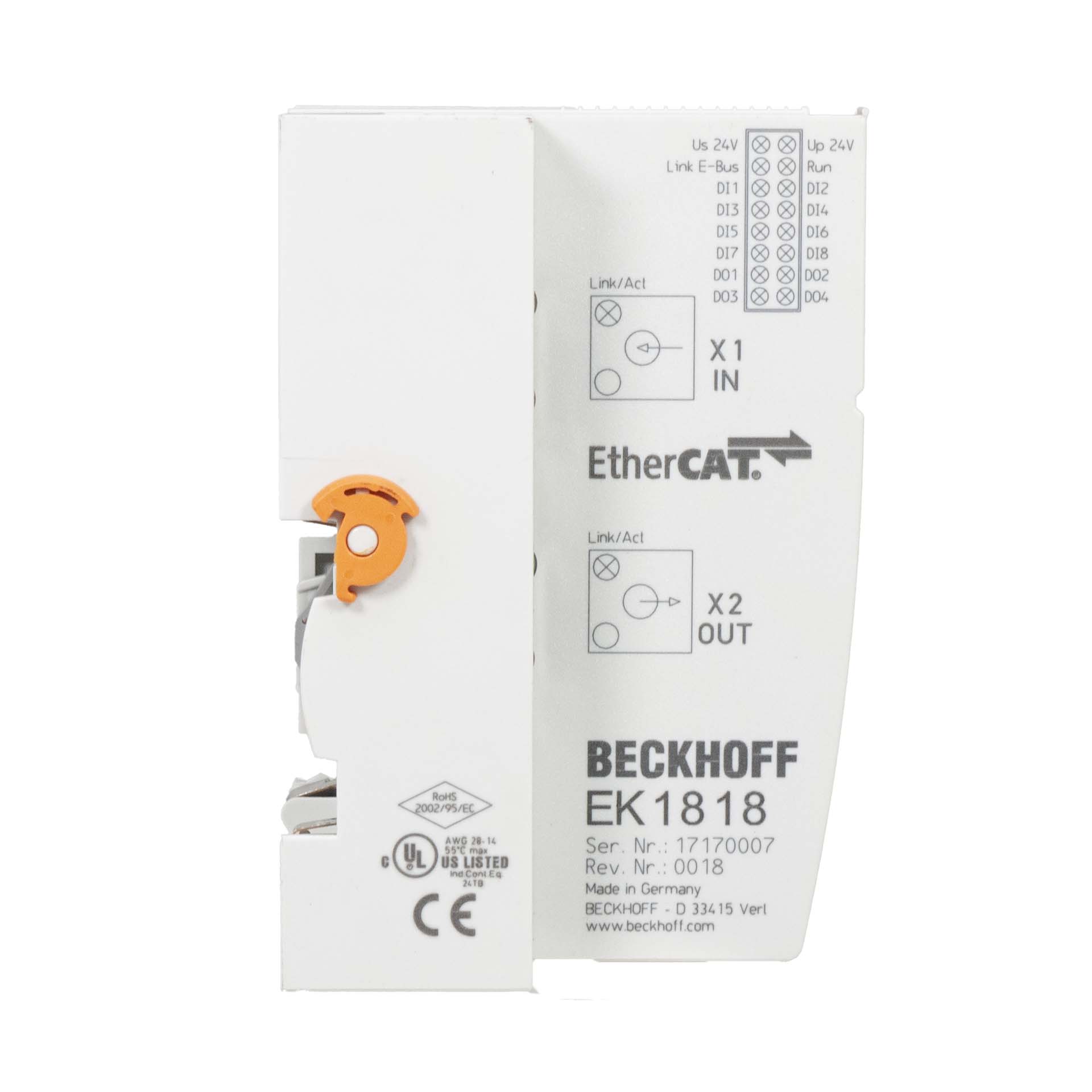 Beckhoff EK1818 rev. 0018 EtherCAT Coupler with integrated digital I/O