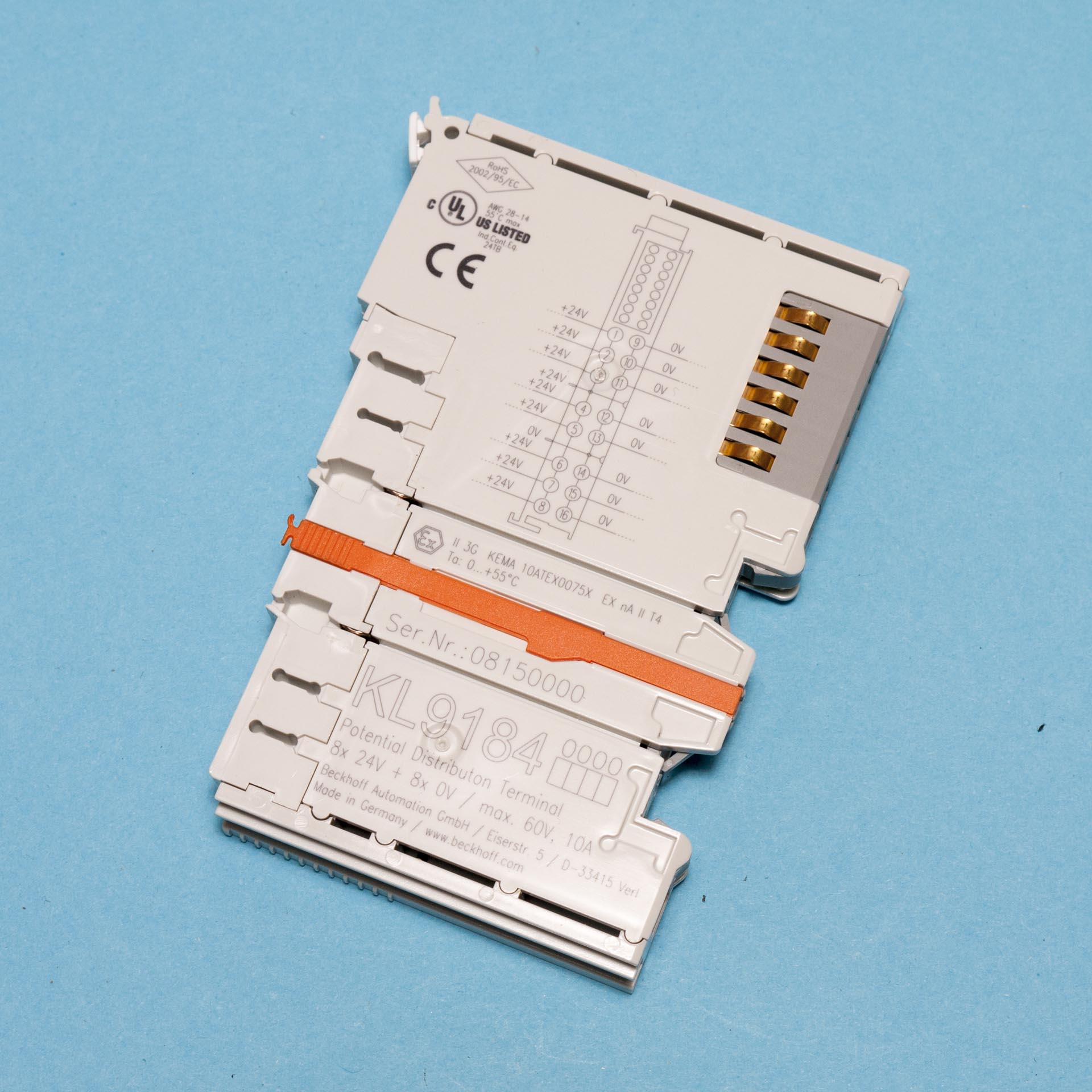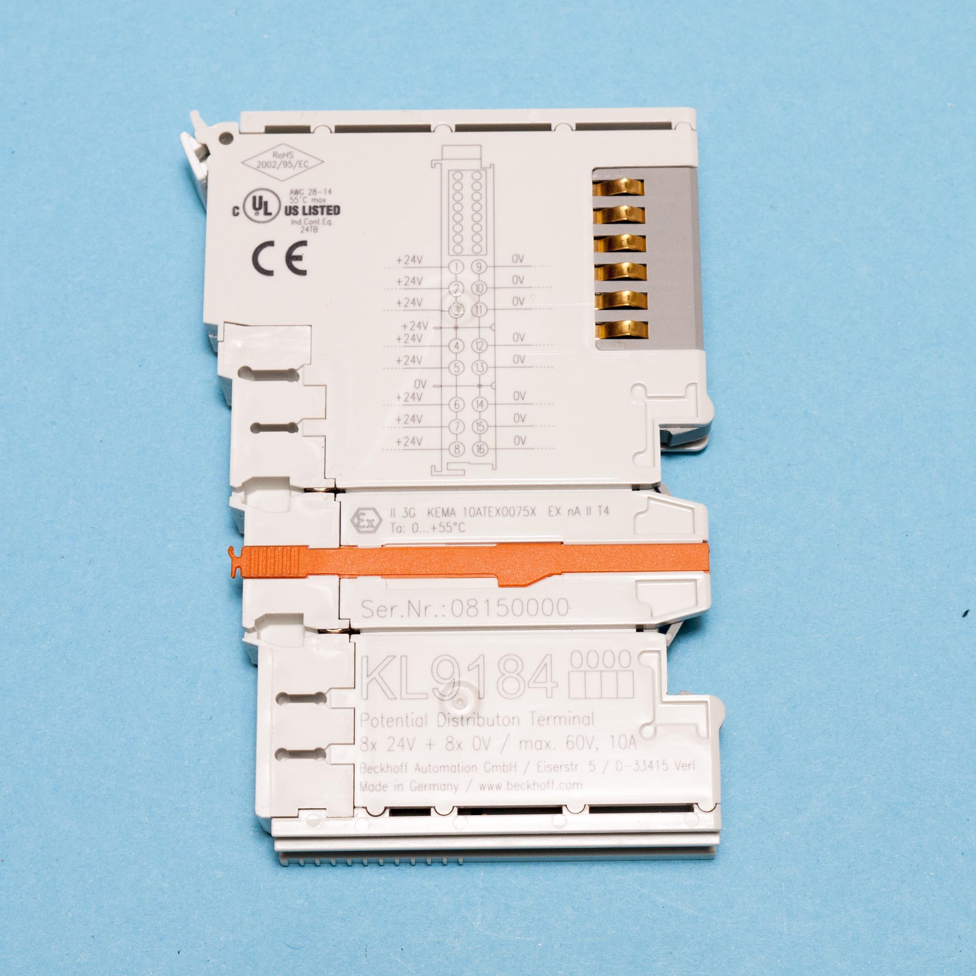 Beckhoff KL9184 Potential Distribution Terminal 8x 24V + 8x 0V max 60V, 10A