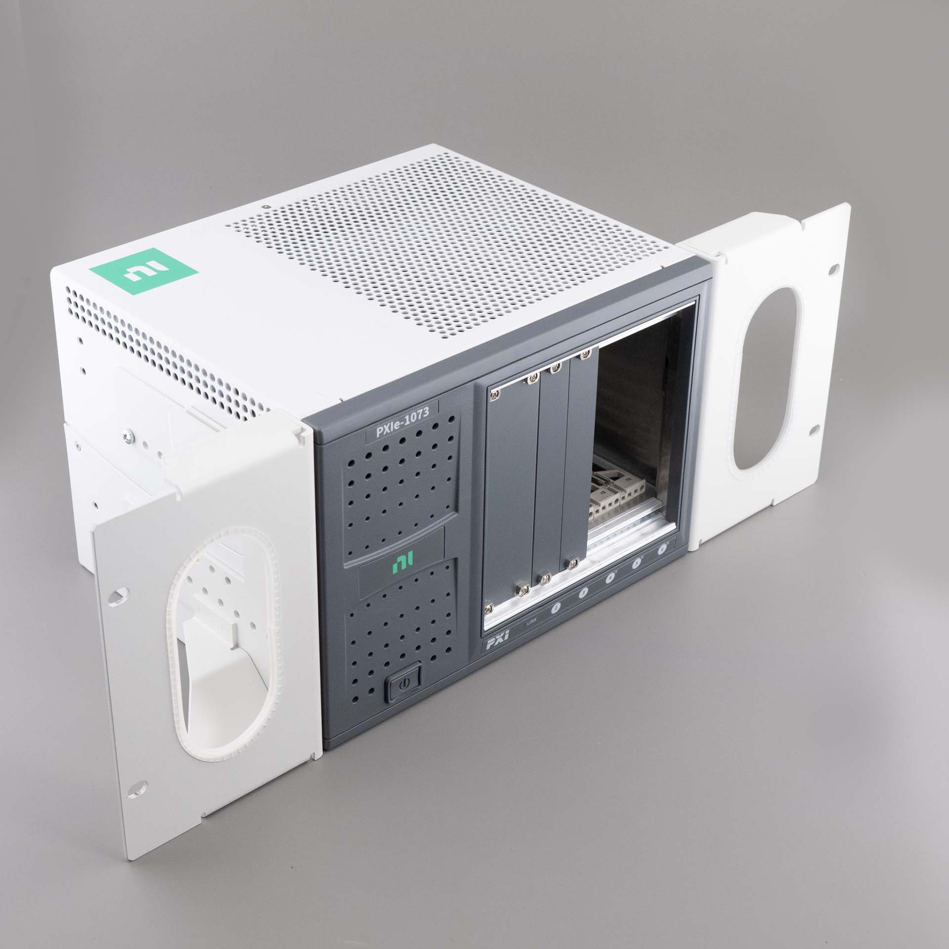 The NI PXIe-1073 is designed for high-performance, low-cost PXI Express systems. It uniquely features an integrated MXI-Express controller built directly into the chassis, leaving all 5 peripheral slots available for measurement modules. It is an ideal foundation for automated test equipment (ATE), data acquisition, and control systems requiring up to 250 MB/s of dedicated bandwidth per slot.