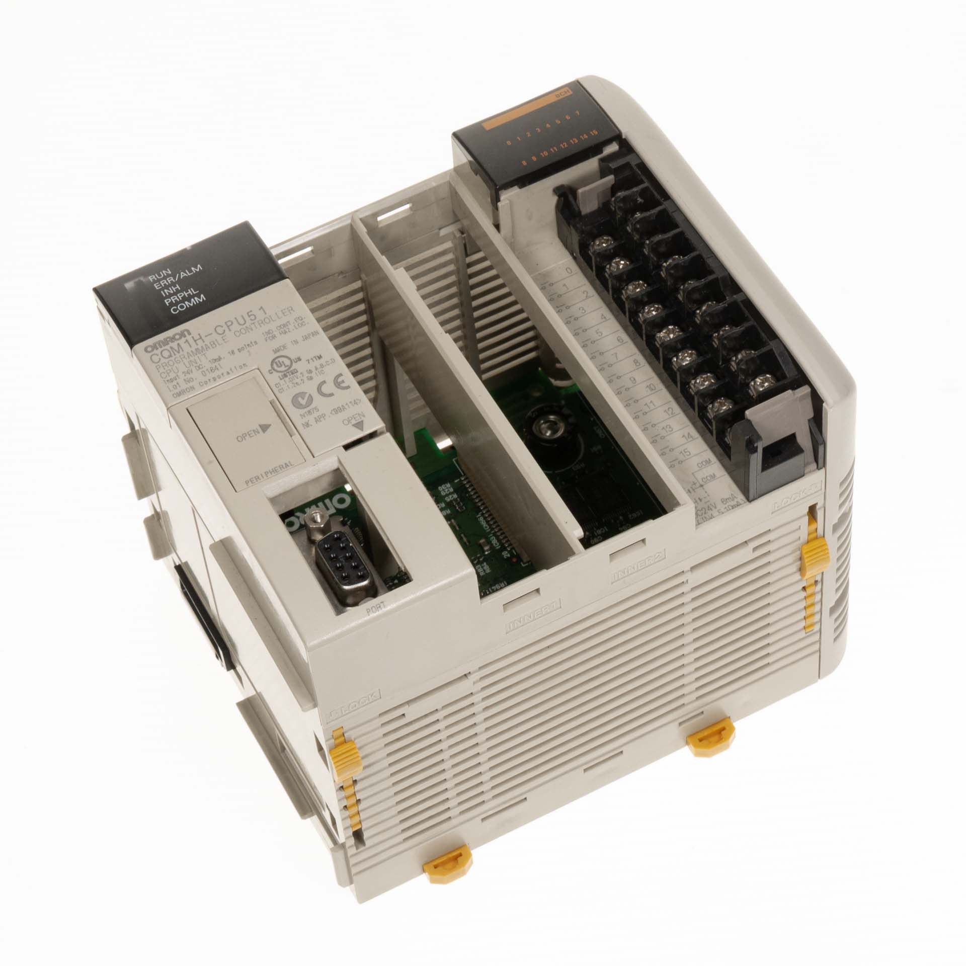 The CQM1H’s rack-less modular design lets you customize your control system by adding “inner boards” for advanced functions, as well as specialized I/O and communications modules. CQM1H offers the most flexibility of all PLC systems in its class.
