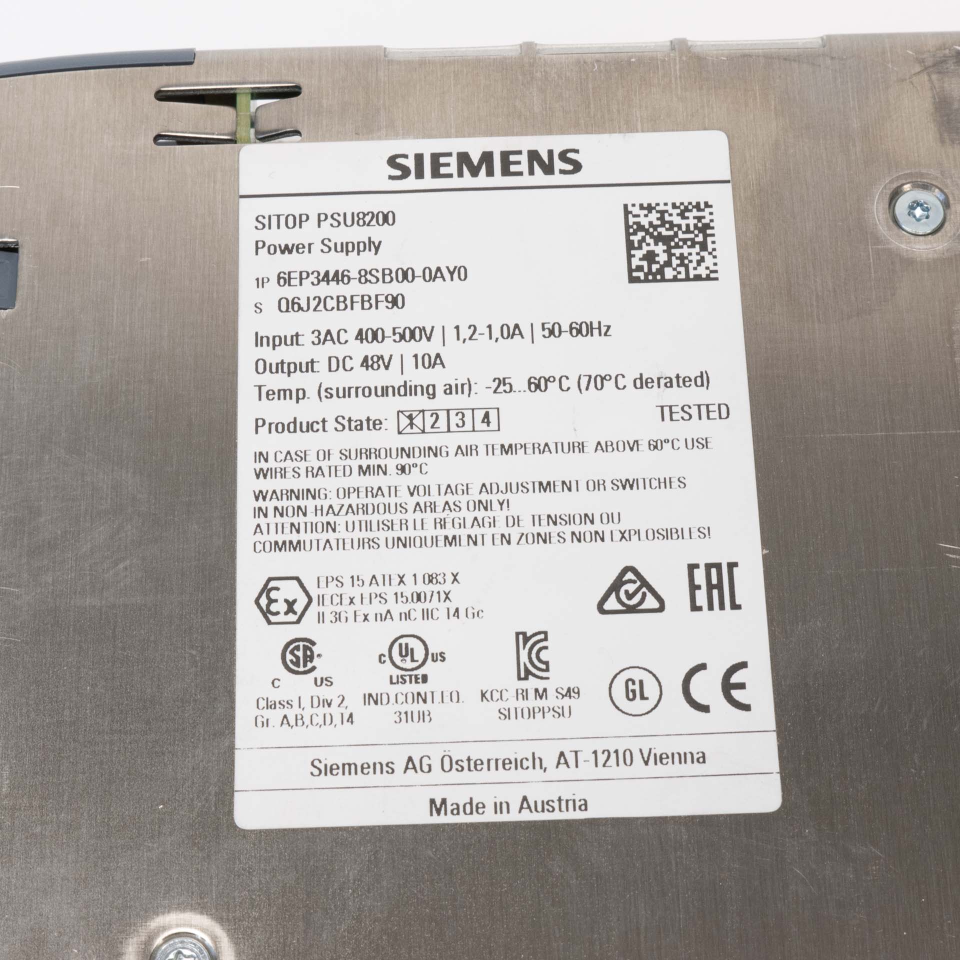 Siemens 6EP3446-8SB00-0AY0 SITOP PSU8200 DC48V 10A 3Phase in Power Supply