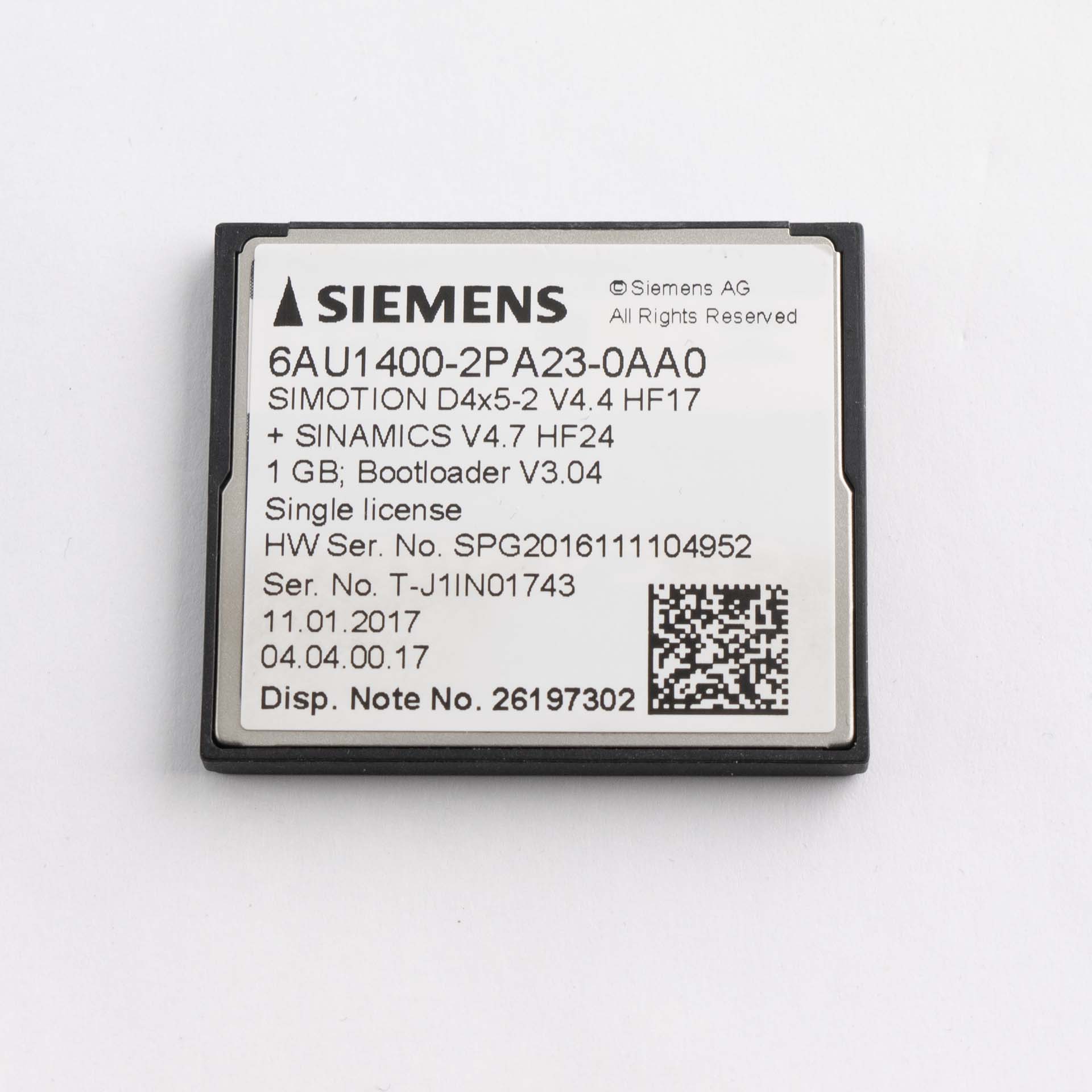- Memory Card: Siemens CF Card (Part No. 6AU1400-2PA23-0AA0)